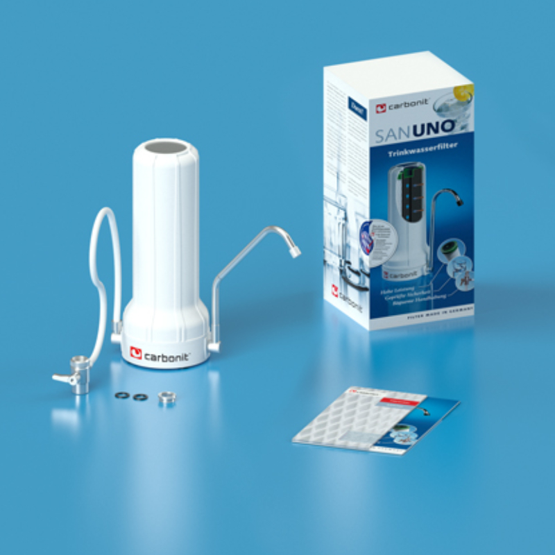 Asztali eszköz a normál csaphoz való csatlakoztatáshoz. Váltószeleppel és adapterrel a belső menetekhez. Helyi szűrés a konyhában.